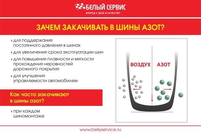 Чтобы в дальнейшем избегать разного давления в шинах – рекомендуется закачивать в шины азот. Стоимость заправки 4-ех колес азотом всего 199 руб.